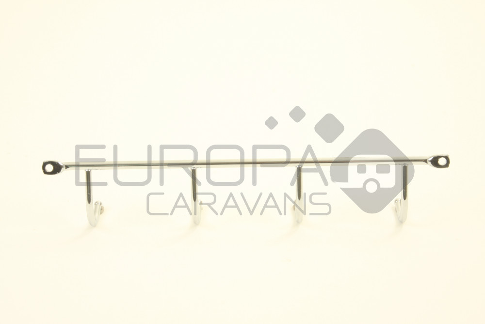 Deze verchroomde kapstok voorzien van 4 haken is ideaal om handdoeken netjes te laten drogen in de keuken of toiletruimte. Gegalvaniseerd.
