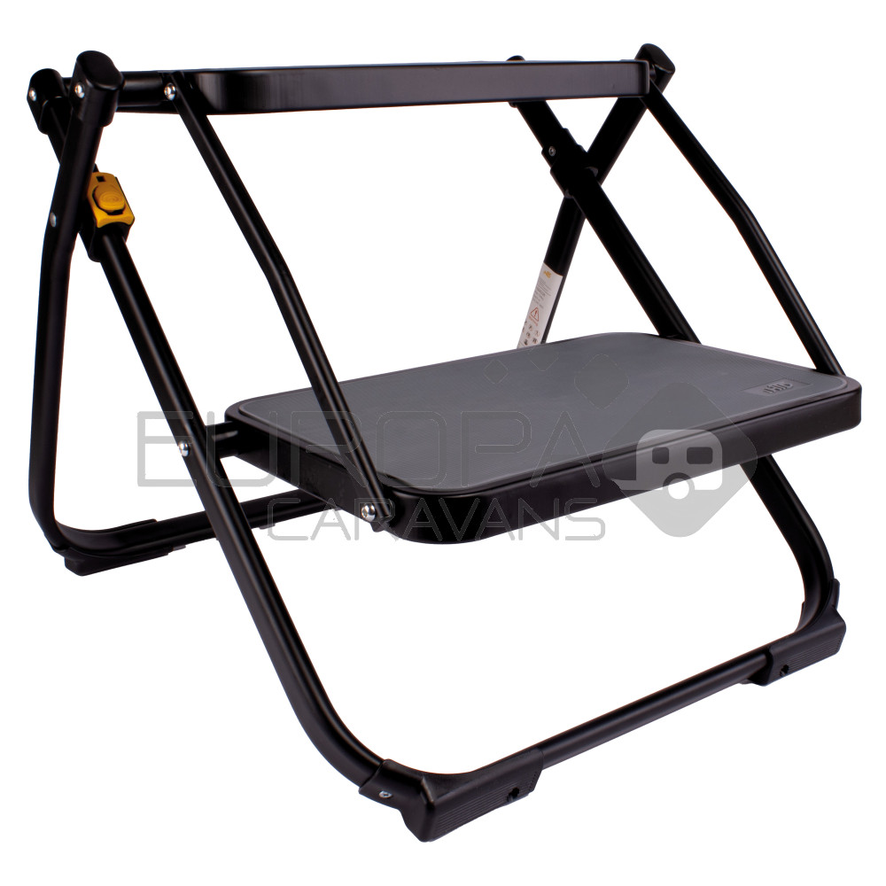 Dubbele en inklapbare opstap met sterk en stabiel mat zwart frame en grijs anti-slip rubber. Vergemakkelijkt het instappen van het voertuig. Plateau: 38x26cm