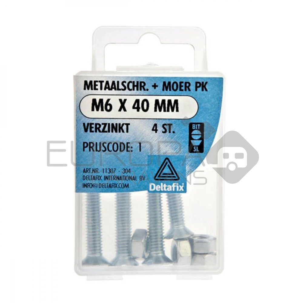 Deltafix Metaalschroef + Moer PK Verzinkt M6x40mm 4st